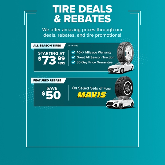 On the rare occasion that you find tires sales at a lower price, just submit the ad, tire size, and brand to our Price Buster Squad. You'll be shown available tire deals at the same price. Take advantage of our exclusive tire sales and get the best deals on high-quality tires for your vehicle. Save more with our unbeatable tire sales today!